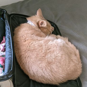 Buddy comfortable in my suitcase. I know its hard to be separated from your cats, so I will make sure you're kept up to date to make you feel better whilst you are away.